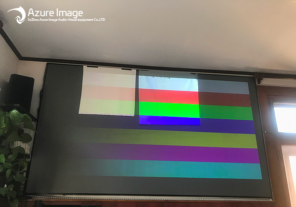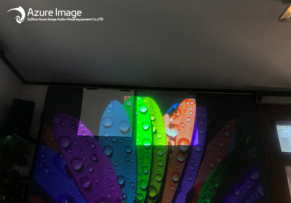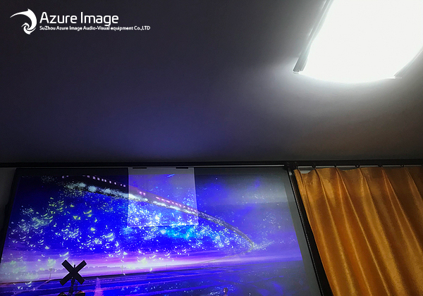 Daytime—— Comparison of three kinds of curtains (the bottom is the existing anti-light curtain, the upper left white glass fiber, the upper right new anti-light projector screen)